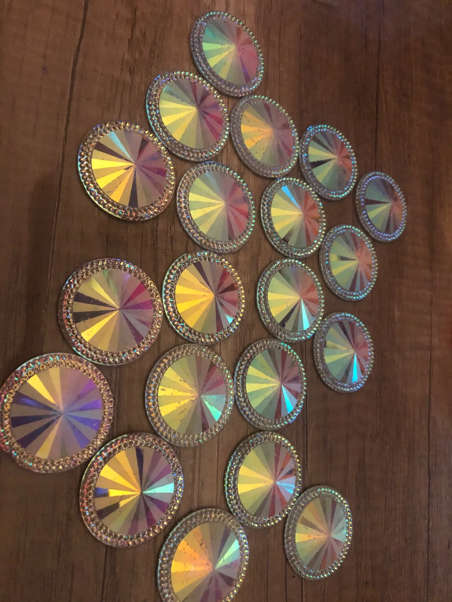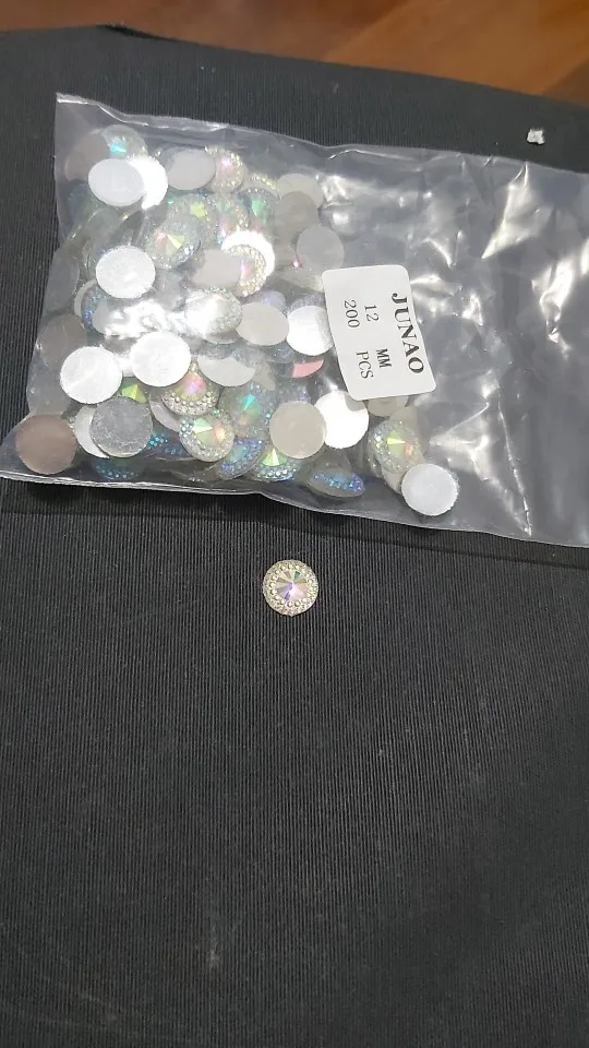JUNAO – Strass AB Rivoli 12 14 20 30 mm à paillettes, pierres rondes en résine à dos plat, avec des appliques en cristal, pour l'artisanat et les fournitures