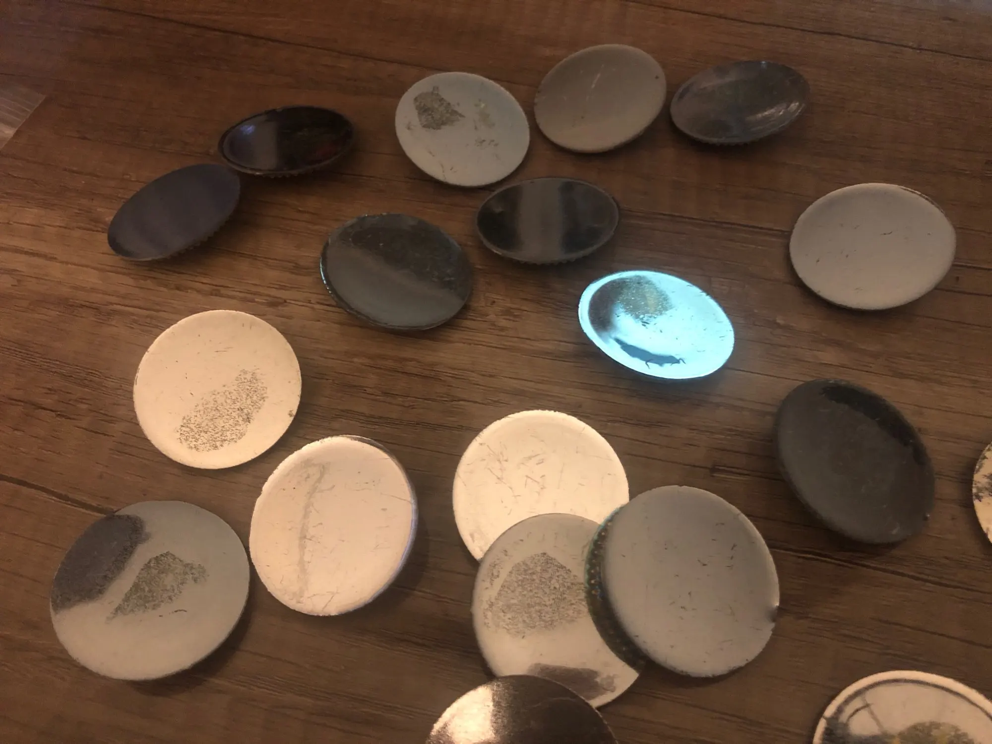 Tous les ronds sont rayés comme si on les avait utilisés depuis longtemps sans précaution aucune.