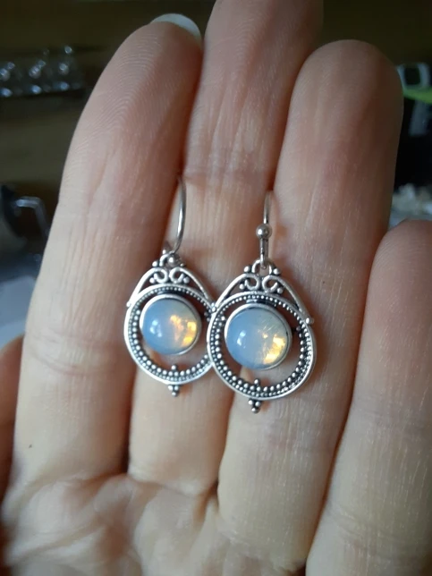 JUNXIN – boucles d'oreilles en pierre de lune pour femme, Style Antique, Style bohème, rond, rouge, bleu, opale, Zircon, bijoux de mariage