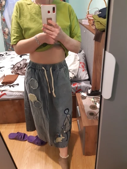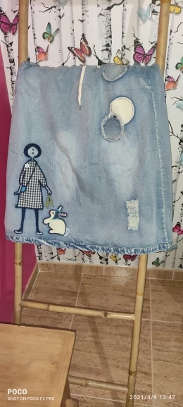 Jupe en denim pour petite fille, style ethnique rétro, imprimé lapin, patch, taille élastique