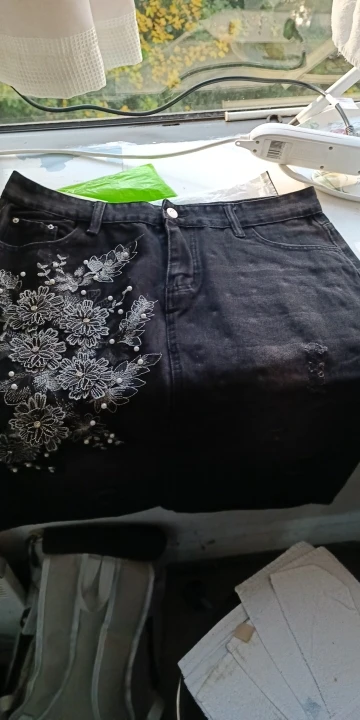 Jupe en jean taille haute pour femmes, nouvelle collection printemps automne mode coréenne, longueur aux genoux, broderie florale, forme trapèze, grande taille S826