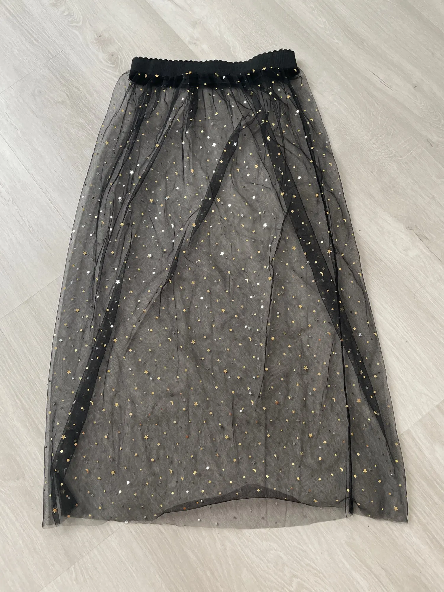Jupe longue en Tulle en maille transparente, jupe Midi élégante, taille haute, ligne a, paillettes lunaires, mode coréenne 2022