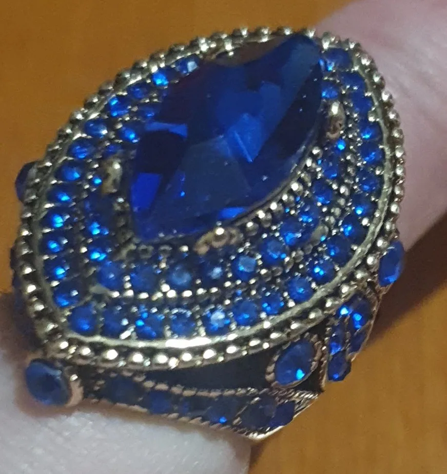 Kinel 2022 nouvelle bague de luxe Antique pour les femmes Vintage Look AAA bleu cristal Boho bijoux couleur or charme ethnique bague de mariage