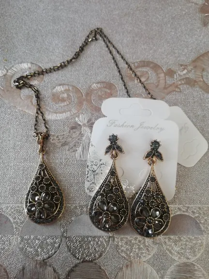 Kinel – boucles d'oreilles de luxe en cristal gris pour femmes, ensembles de bijoux Vintage, couleur or Antique, bijoux de mariage ethniques turcs
