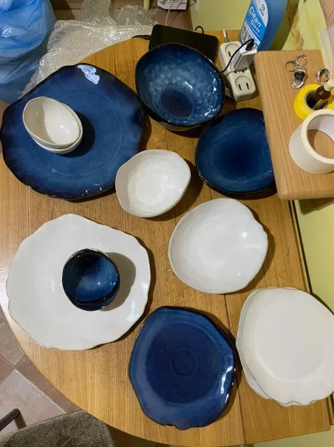 KINGLANG vaisselle de qualité nordique | Céramique domestique, forme irrégulière bols à salade de riz, plats plats à Desserts peu profonds, assiette
