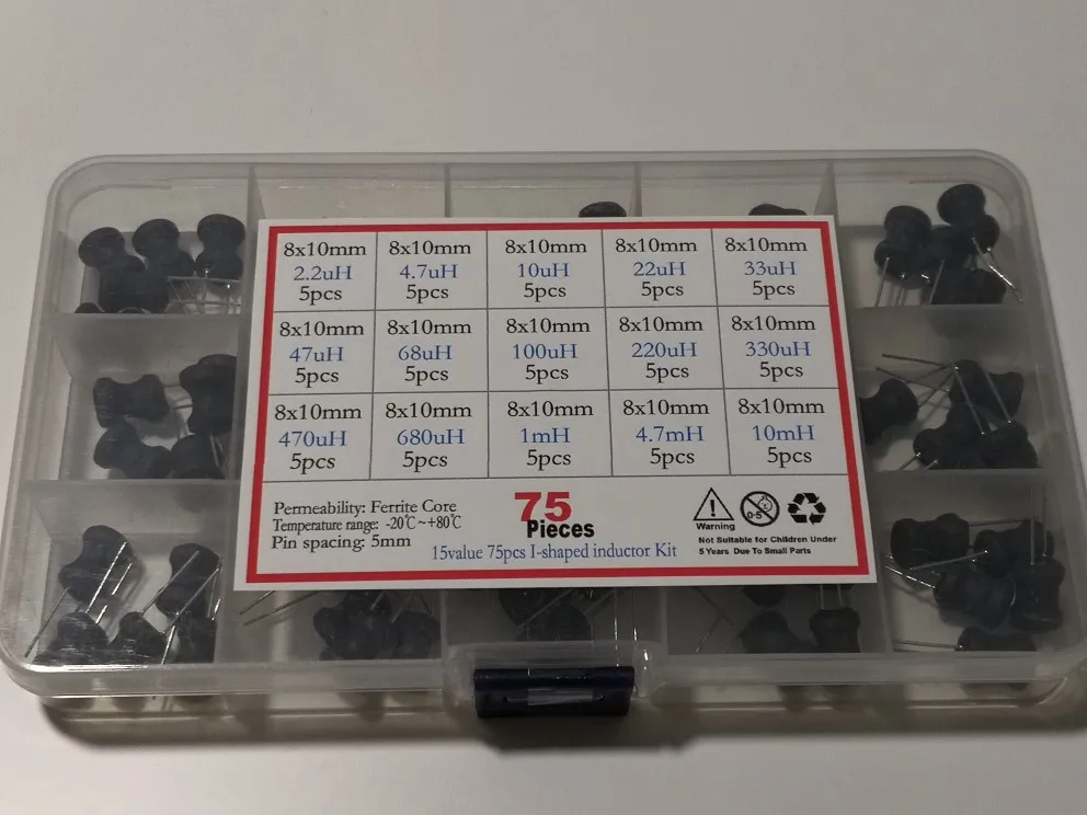 Kit d'inducteurs de puissance à Inductance, 75 pièces/boîte 8x10mm, 4, 7, 10, 22, 33, 47, 68, 100, 220, 330, 470,, 1mh, 10mh