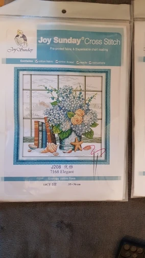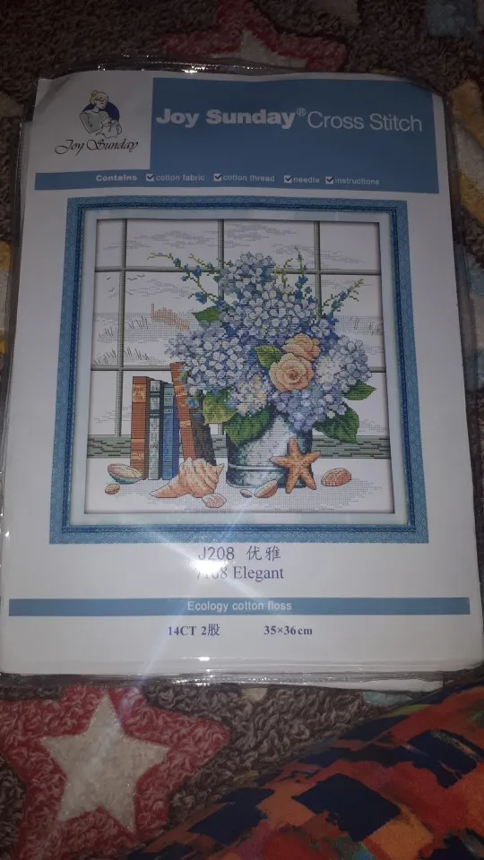 Kit de point de croix élégant, toile imprimée, fleur violette, 14ct 11ct, fil de coton couleur DMC, broderie
