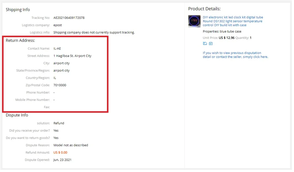 Évaluation Aliexpress :