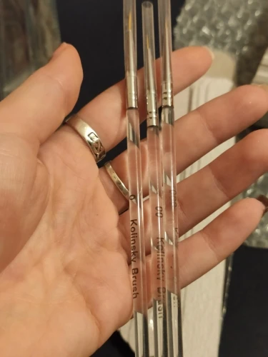 Kolinsky – brosse à ongles acrylique 3 pièces/ensemble, fine, pour Gel uv, stylo de dessin, peinture, poignée transparente, ensemble de pinceaux pour Nail Art