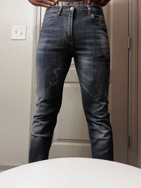 Couleur légèrement plus clair que la photo, jean plutôt slim mais satisfait du produit !
