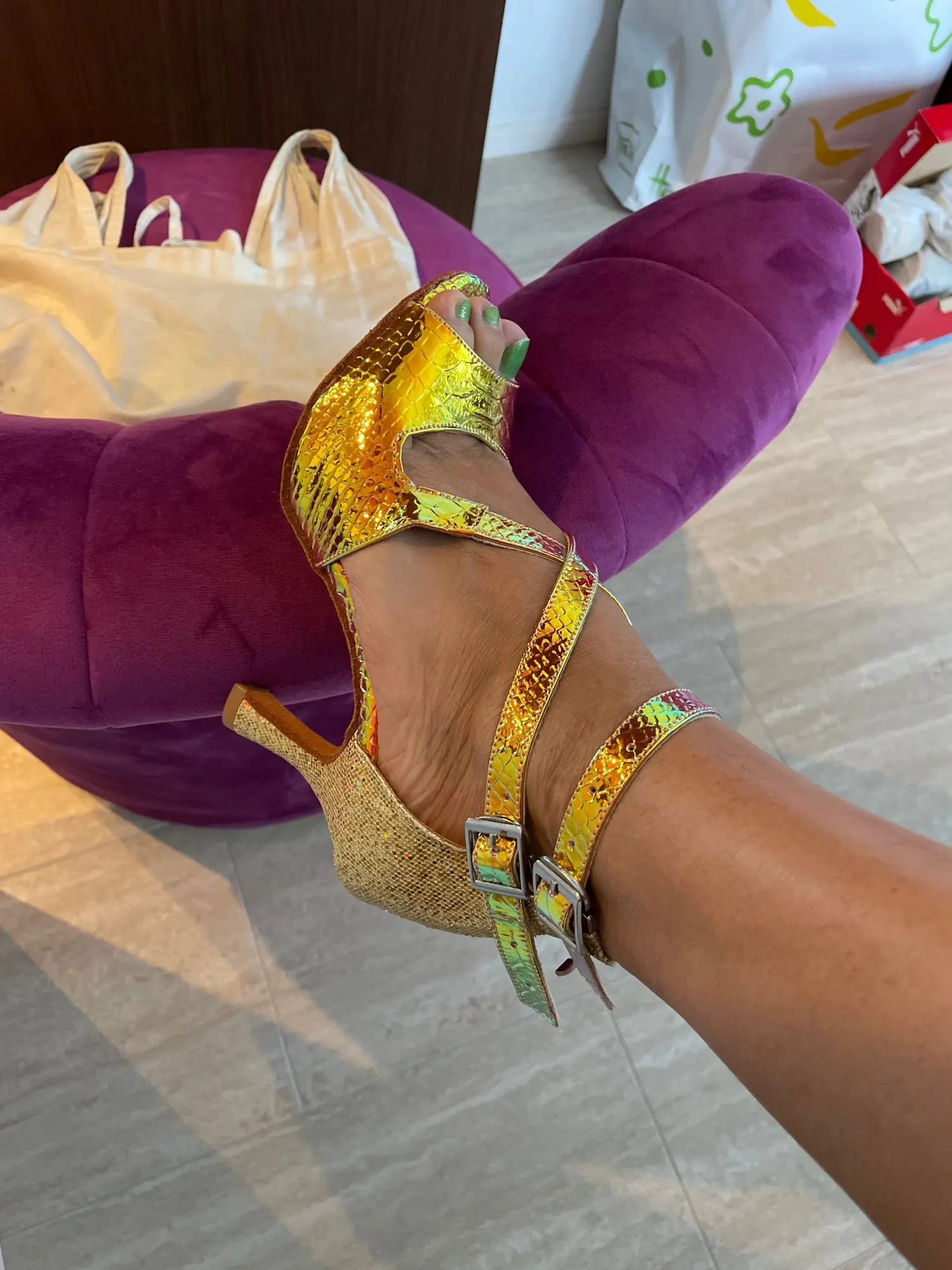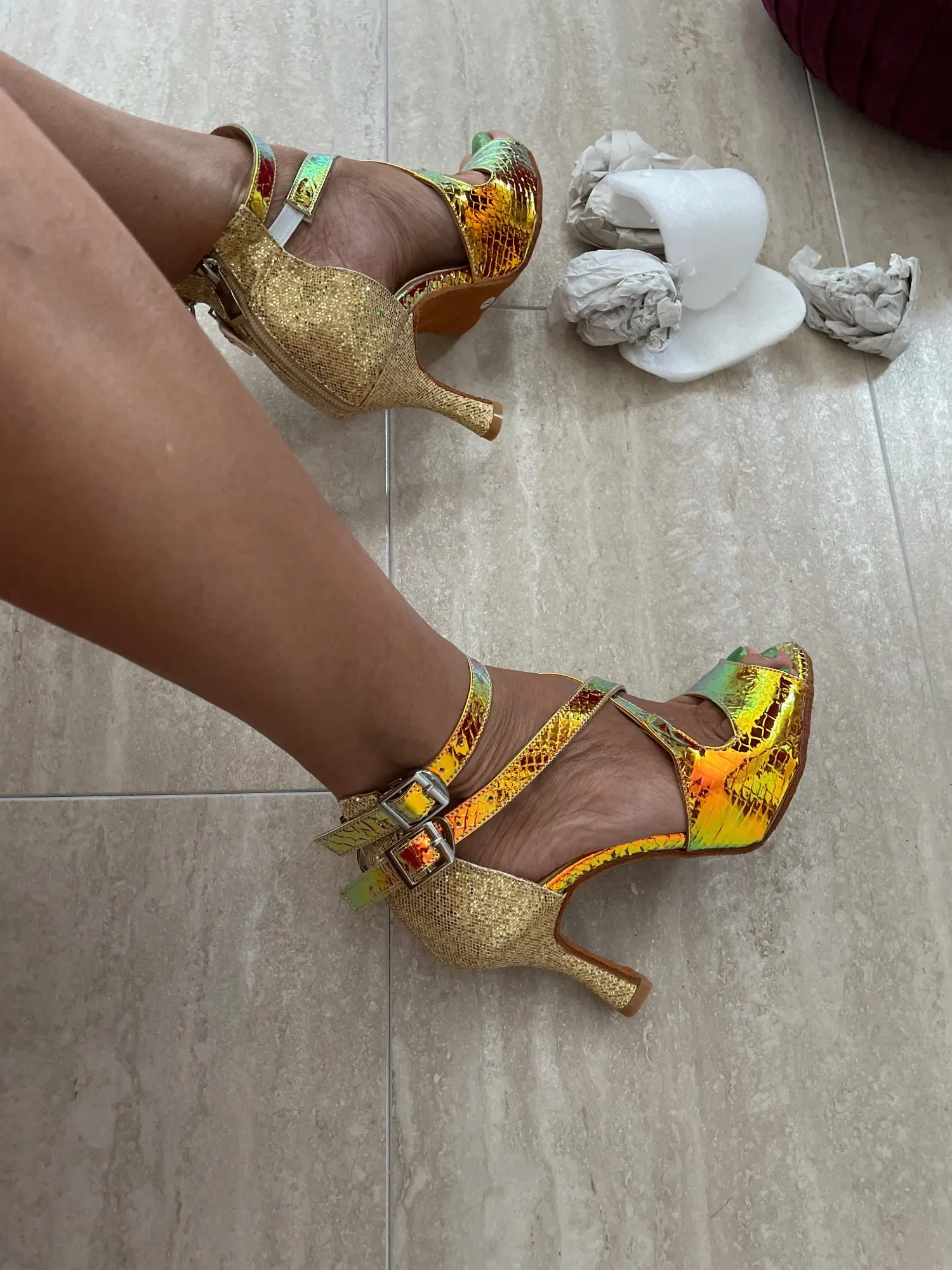 La taille correspond à celle commandée, finition de la chaussure pas top ( Colle appâtante et semelles pas bien coupée ) sinon d’un ensemble correct pour le prix !!! Il me reste plus qu’à les essayer sur la piste de danse