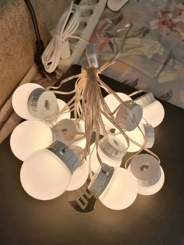 fonctionne très bien avec 3 lumières différentes blanche jaune et entre les deux. on peut régler la luminosité en l’augmentant ou diminuant. parcontre c’était mal emballer donc elles auraient pu se casser