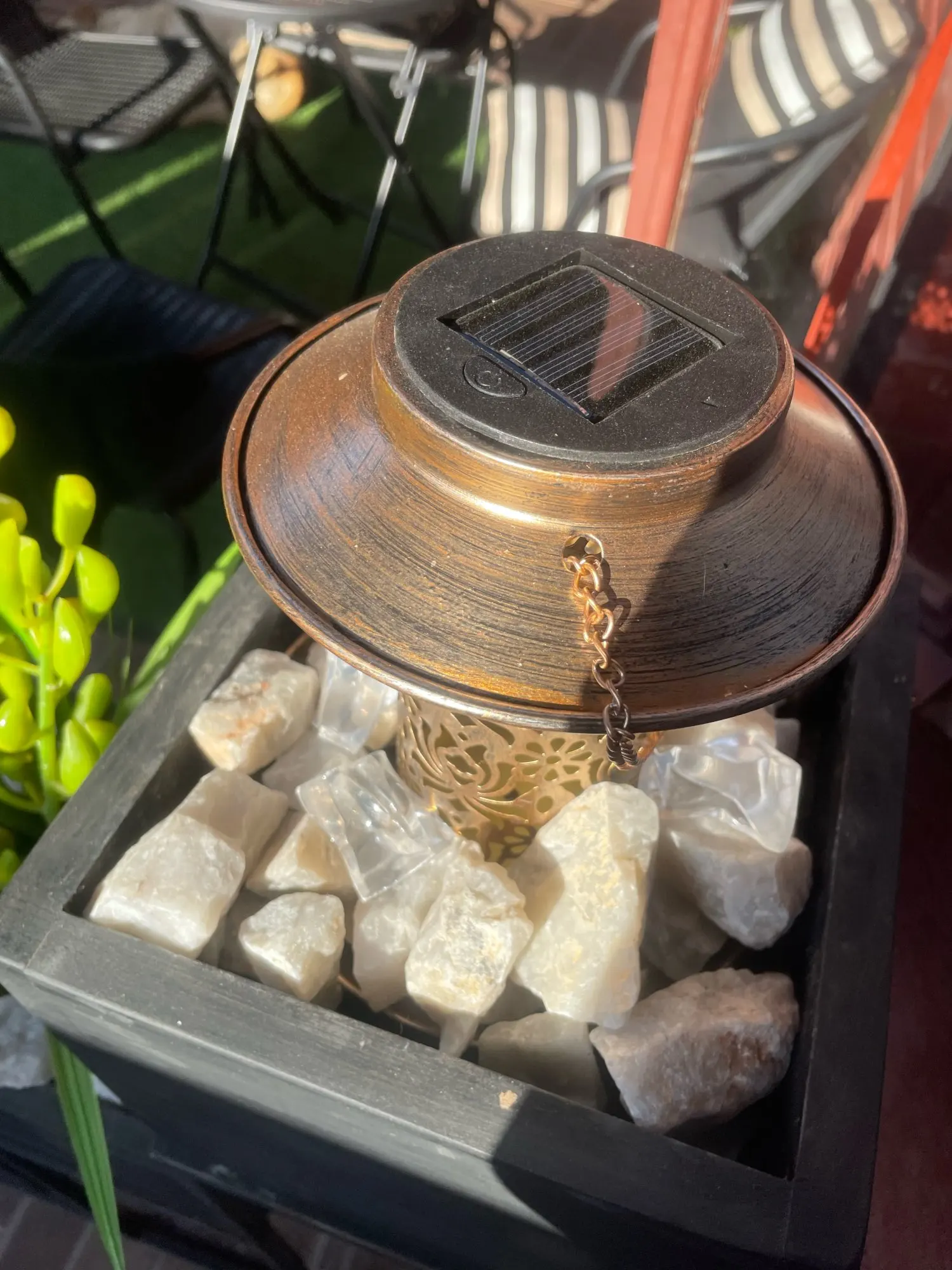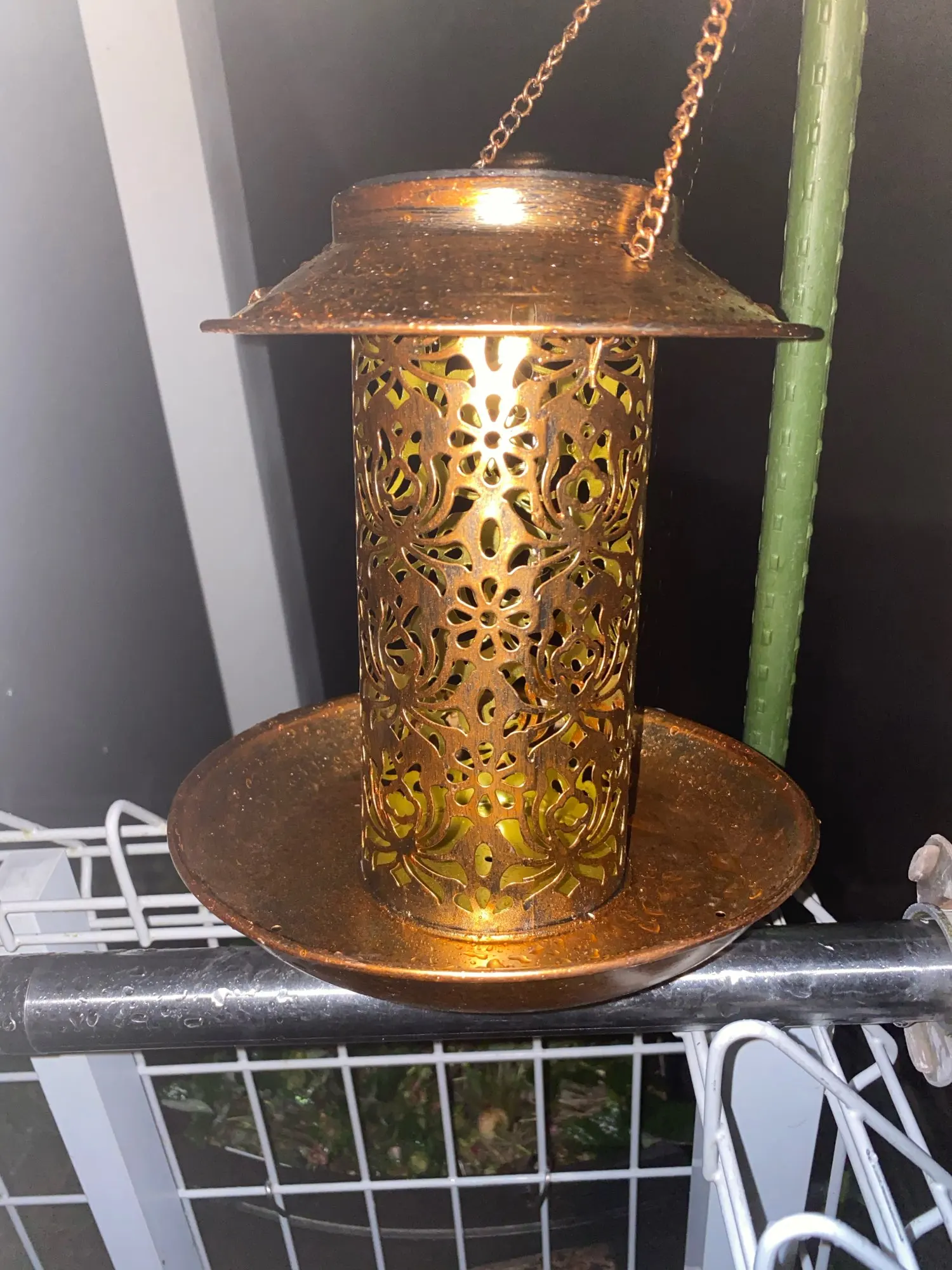 Génial ! La lanterne est très belle et à l'air solide à voir au fil du temps. le colis est arrivé un peu abîmé mais la lanterne est intacte. Si la lanterne est en hauteur on ne voit pas les ombres projetées. La commande à pris un mois pour arriver en Martinique. Je vais en recommander d'autres.