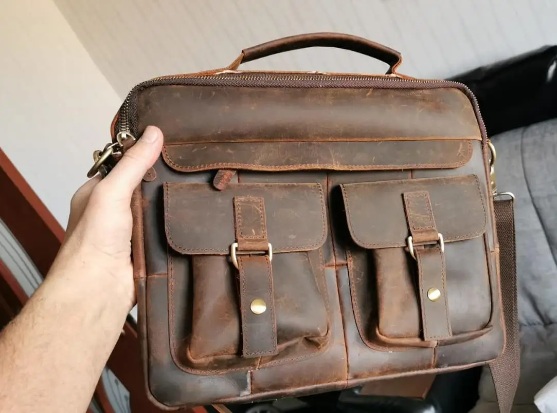 Le'aokuu hommes en cuir véritable Style Antique porte-documents d'affaires 13 "étuis pour ordinateur portable Attache sacs de messager portefeuille B207-d