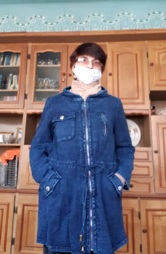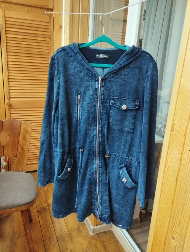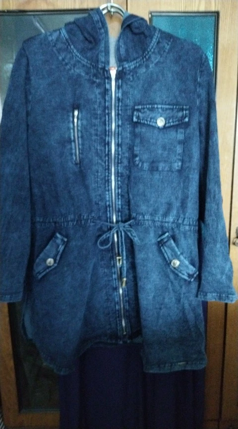 LIH HUA – veste longue en Denim pour femme, Style décontracté, en tricot extensible, avec épaulettes et chapeau, grande taille