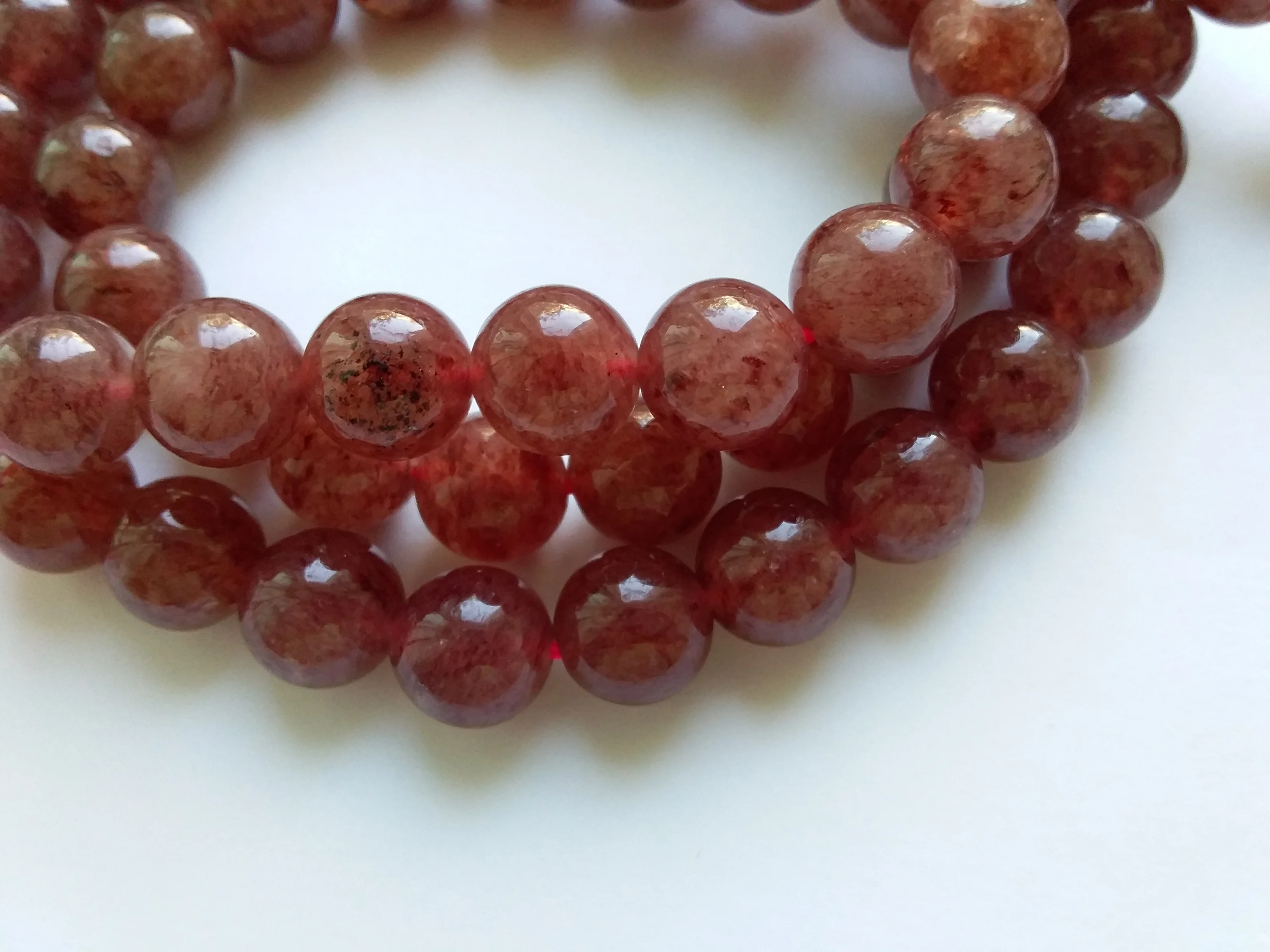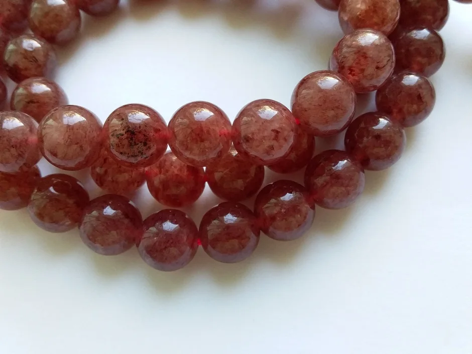 Livraison gratuite (2 brins/ensemble) naturel 10mm Madagascar fraise quartz cristal perles pierre ronde pour la fabrication de bijoux ou cadeau