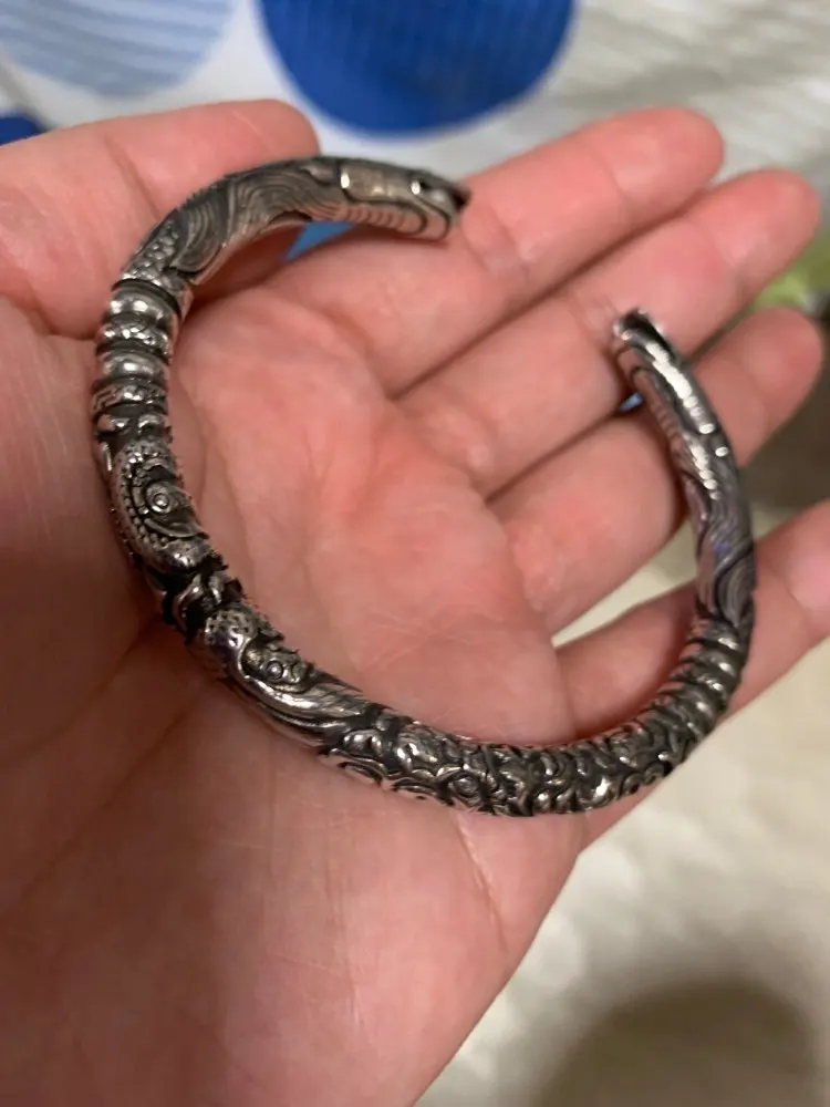 LKO-bracelet à double tête de dragon chinois en argent tibétain ajustable, accessoire tendance pour hommes et femmes