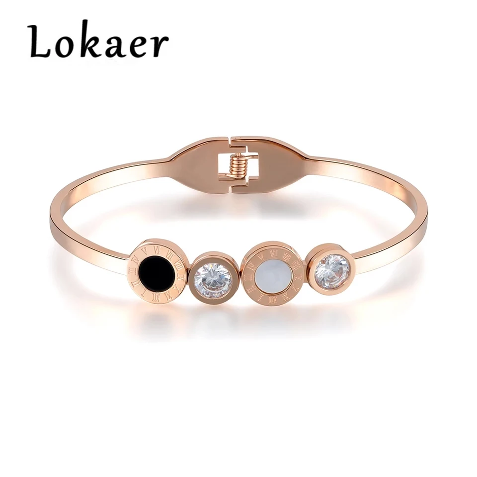 Lokaer – Bracelets avec chiffres romains pour femmes, classiques, en acier inoxydable 316L, coquille noire, pour amoureux, B17019