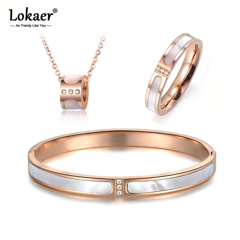 Lokaer – ensemble classique de colliers et bracelets en titane et acier pour femmes, bijoux de mariage en cristal CZ, coquille blanche, SE030
