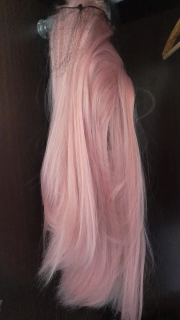 Lolita – perruque longue et lisse avec frange pour femmes, cheveux naturels, rose, blond, pour Cosplay