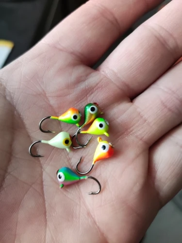 Lot de 6 hameçons de pêche sur glace en hiver, Mini appât métallique pour poisson, hameçon tête de plomb, matériel pour la pêche à la turlutte, 15mm/1.1g