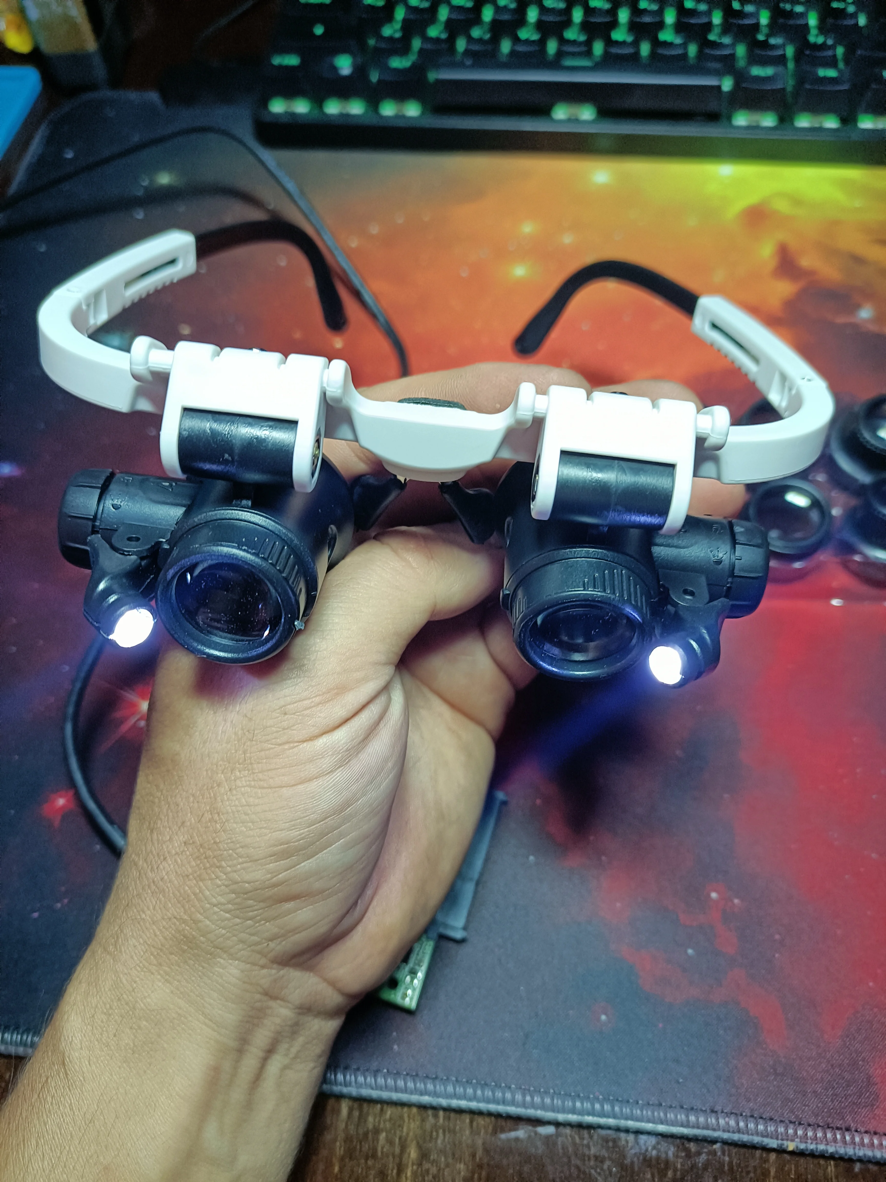 Lunettes binoculaires Loupe LED éclairé portant Loupe Loupe 6X-25X multi-lentilles remplaçables pour la réparation de montre de bijoux