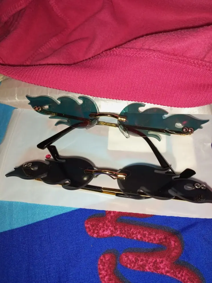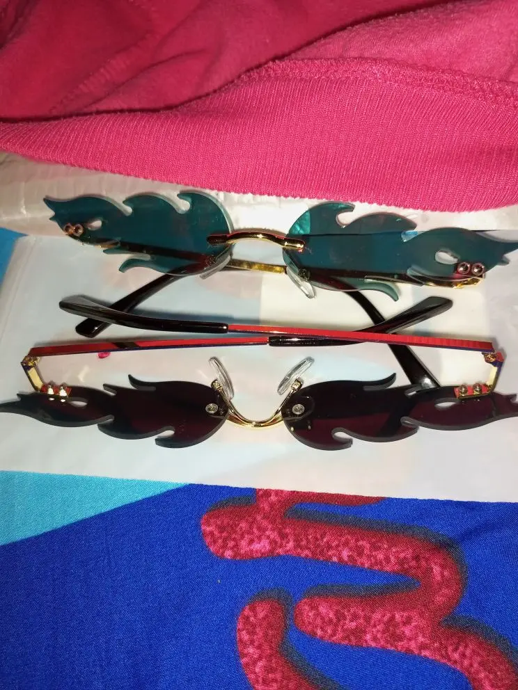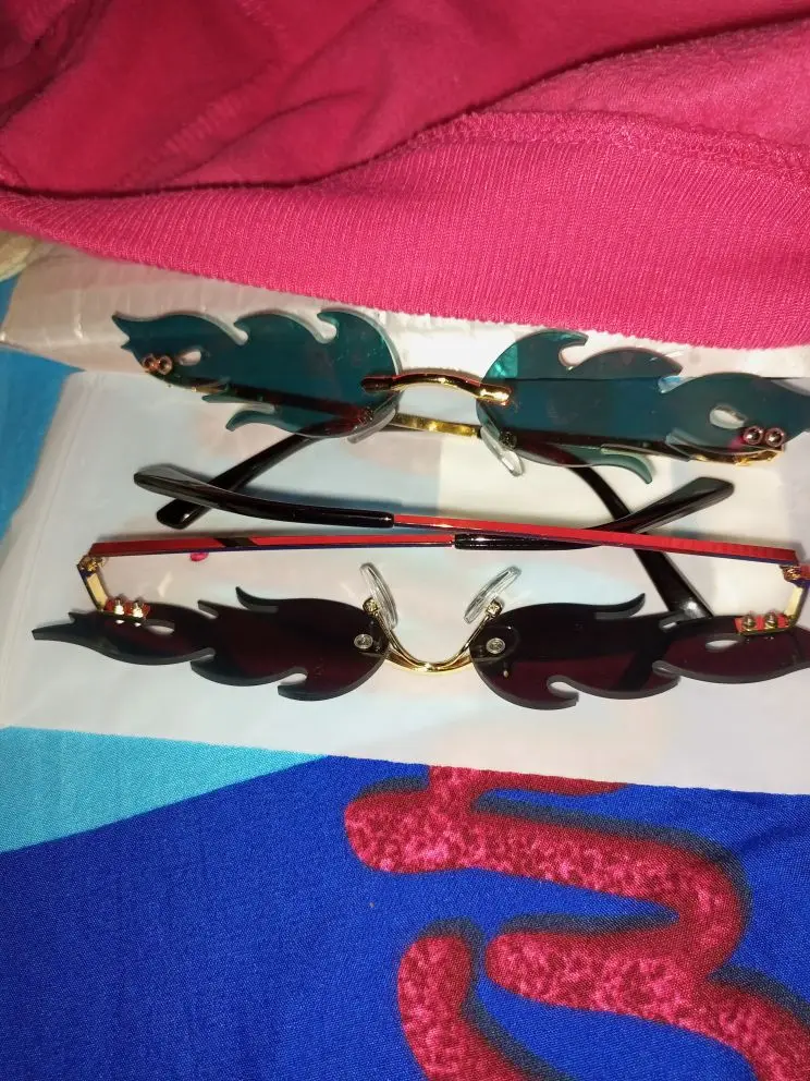 Lunettes de soleil de luxe yeux de chat femmes Vintage marque concepteur sans monture feu flamme lunettes de soleil tendance miroir lentille étroite lunettes UV400