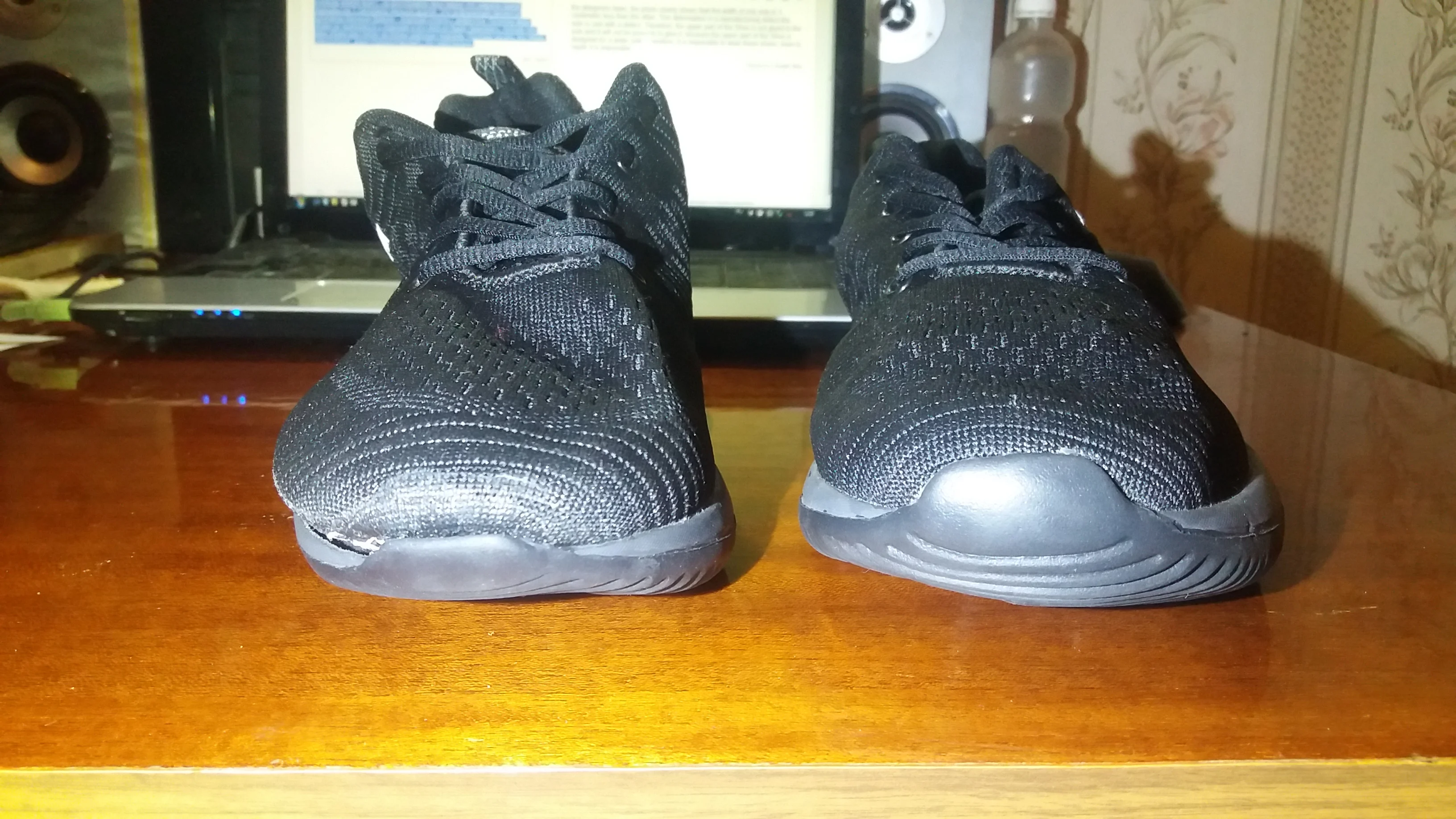 Wow pour vrai, j'étais sceptique à savoir combien elle allait prendre de temps, mais ça à pris un mois moins un jour :) . Je suis très satisfaite de la pesanteur , c'est comme sur l'image. Par contre le dessous de la chaussure ( si ça intéresse quelques-uns), n'est pas en caoutchouc, mais elles sont un peu anti-dérapantes tout de même :)