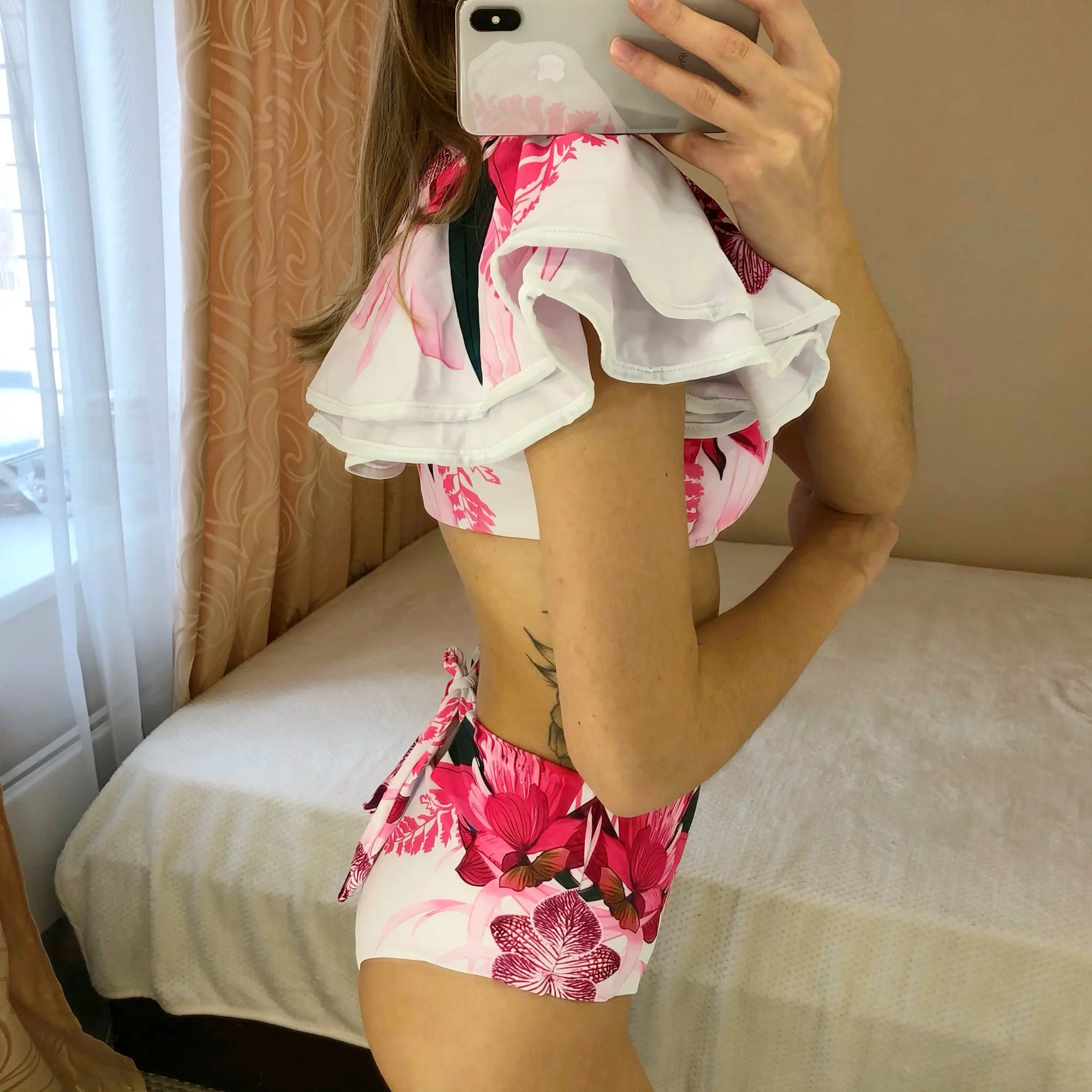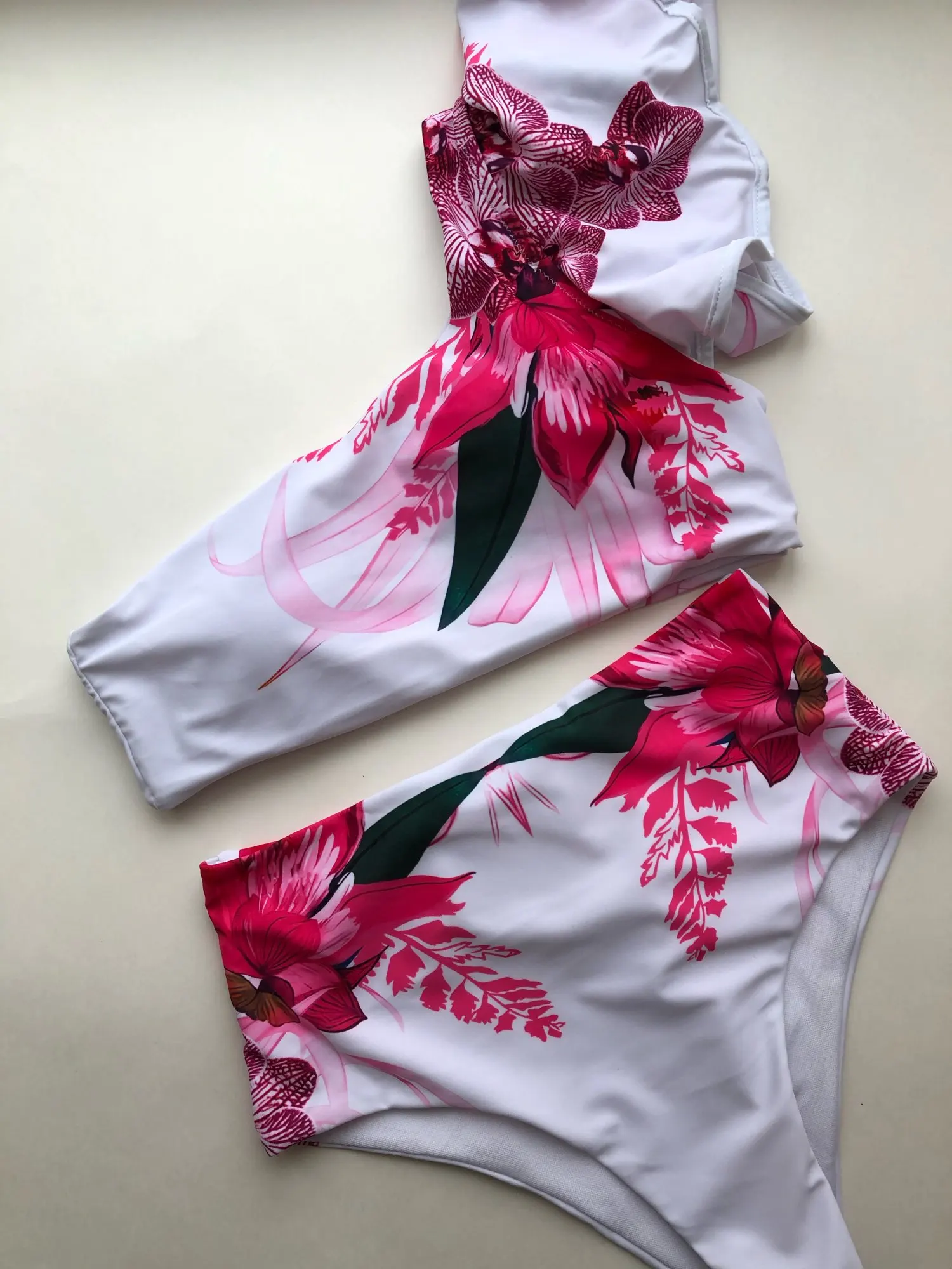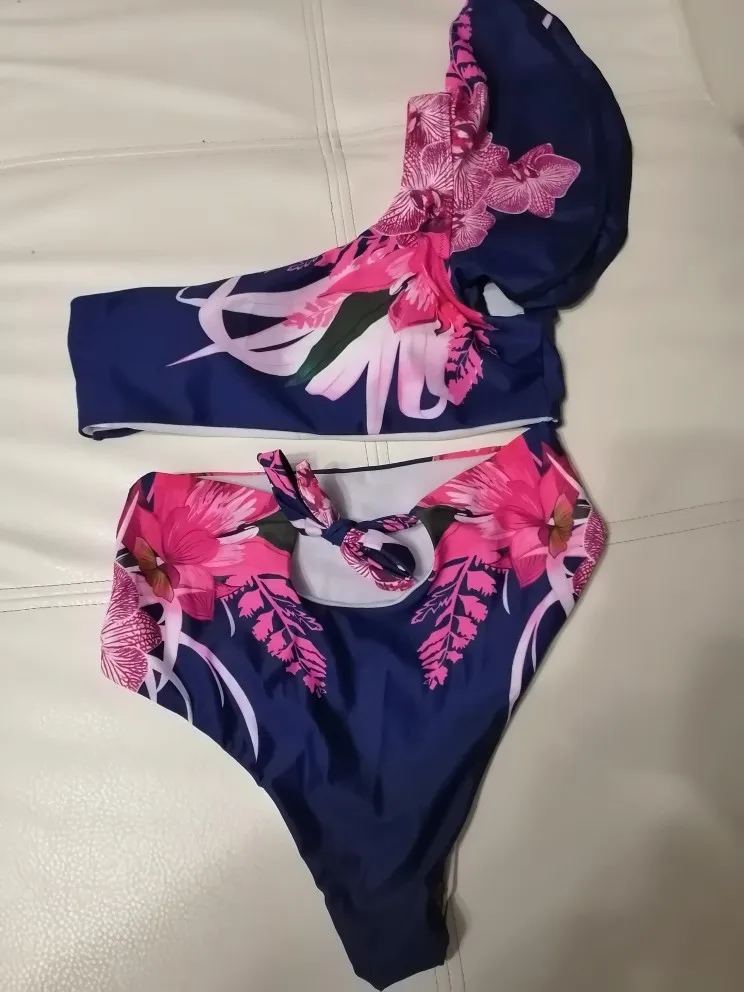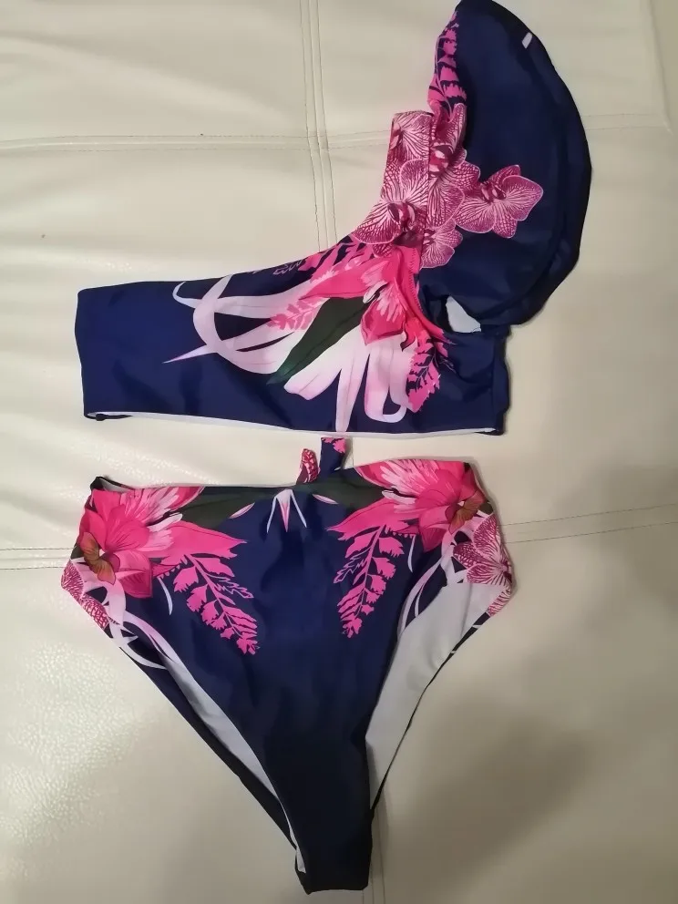 Maillot de bain à volants pour femmes, imprimé Floral, taille haute, épaule dénudée, Push-Up, ensemble deux pièces, vêtements de plage, été