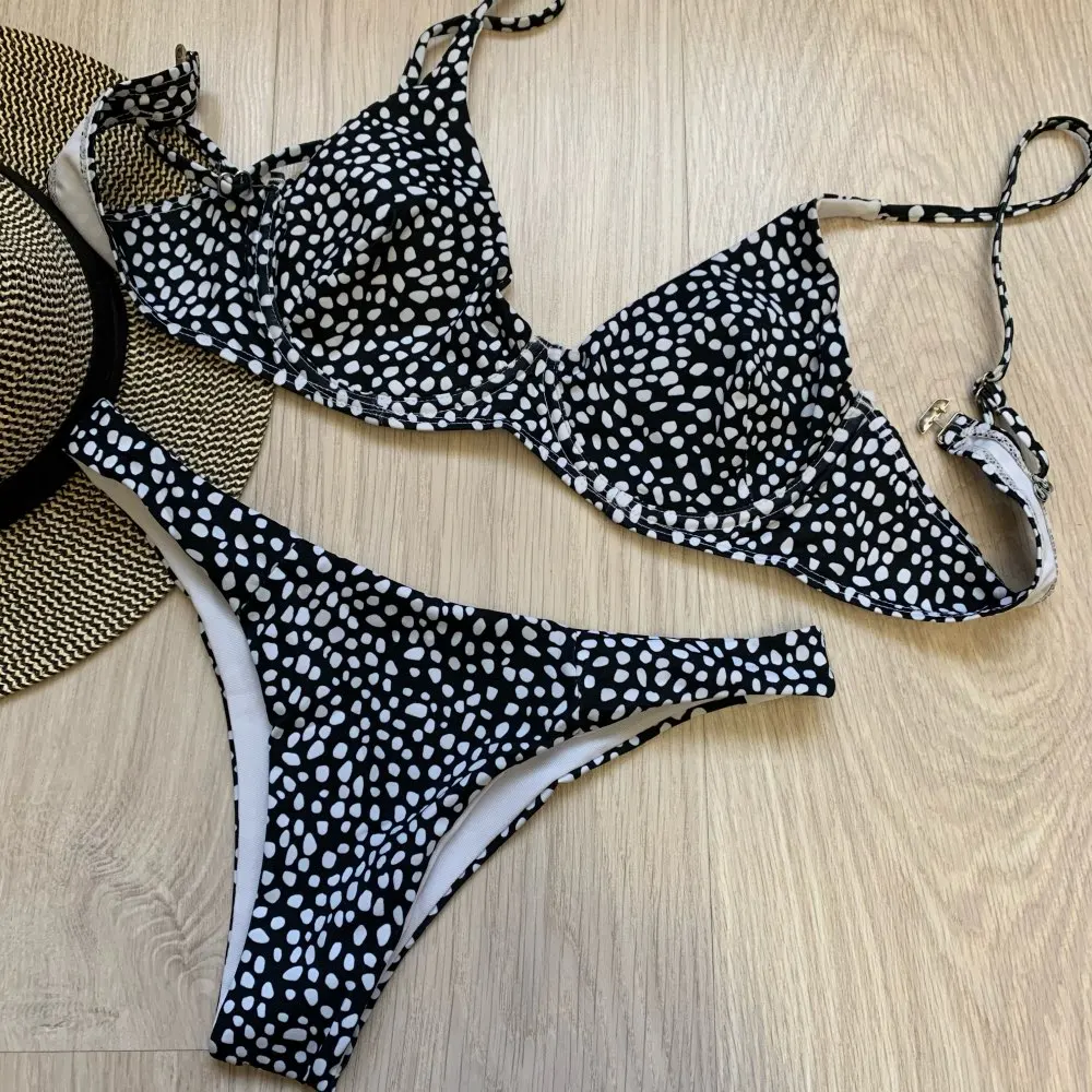 Maillot de bain deux pièces pour femmes, imprimé petits points de pierres, taille moyenne, Bikini, ensemble pour baigneurs, vêtements de plage, 2022, V2234