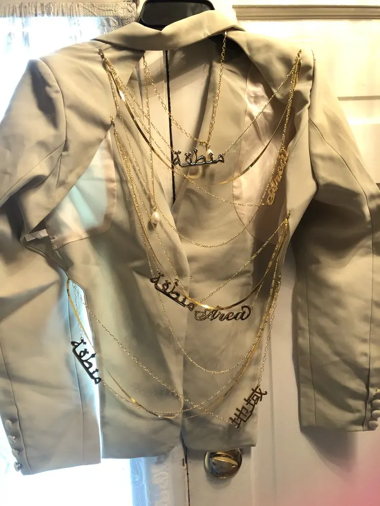 Manteau Sexy à dos nu avec chaîne de texte en métal, vert clair, manches longues, col en v, bouton unique, pour soirée en Club, nouvelle collection automne 2022