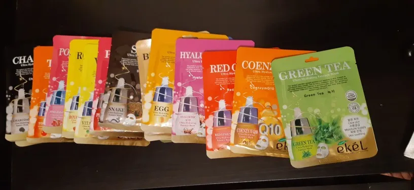 Masques tissu Ekel assortiment de 17 pièces. Cosmétiques coréens. Original alginate masque points noirs cosmétiques visage hydratant acné remède acide hyaluronique collagène
