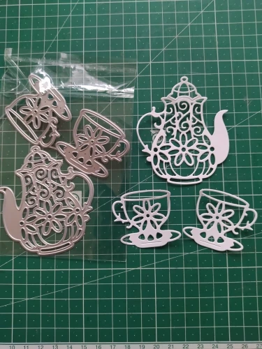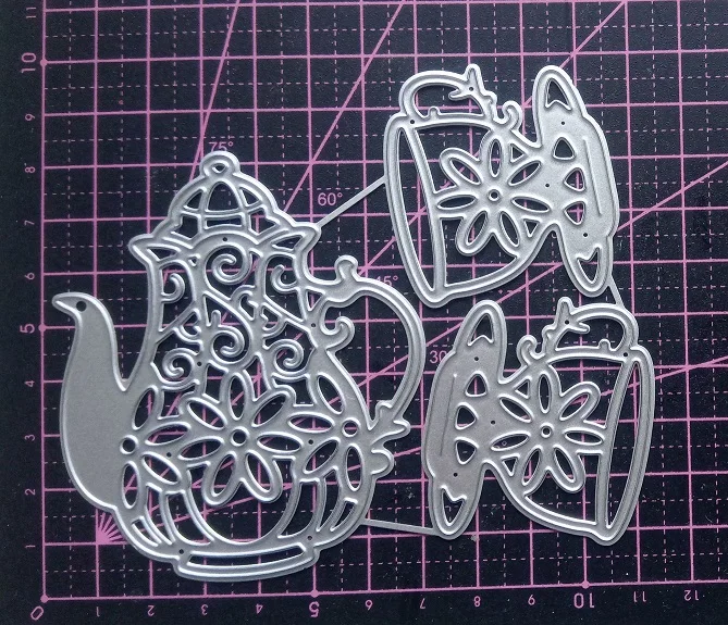 Matrices de découpe en métal, artisanat cochon, moule de découpe, tasse de théière à fleurs, Scrapbook, couteau artisanal en papier, poinçon de lame, pochoirs, 3 pièces