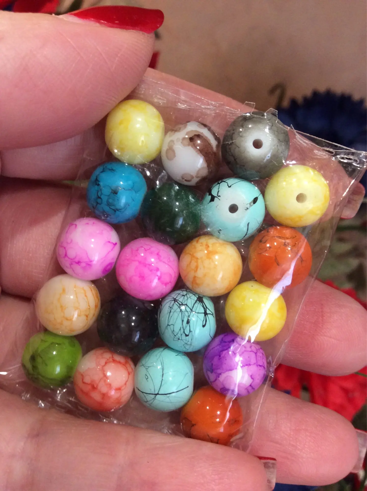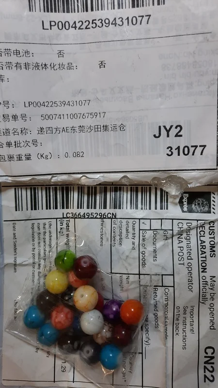 ne correspond pas vraiment a l image mais jol8es quand meme envoi pas super rapide 6 semai es pour la france je ne recommanderai pas les perles be sont pas uni et grosse difference de teinte dans une meme couleur