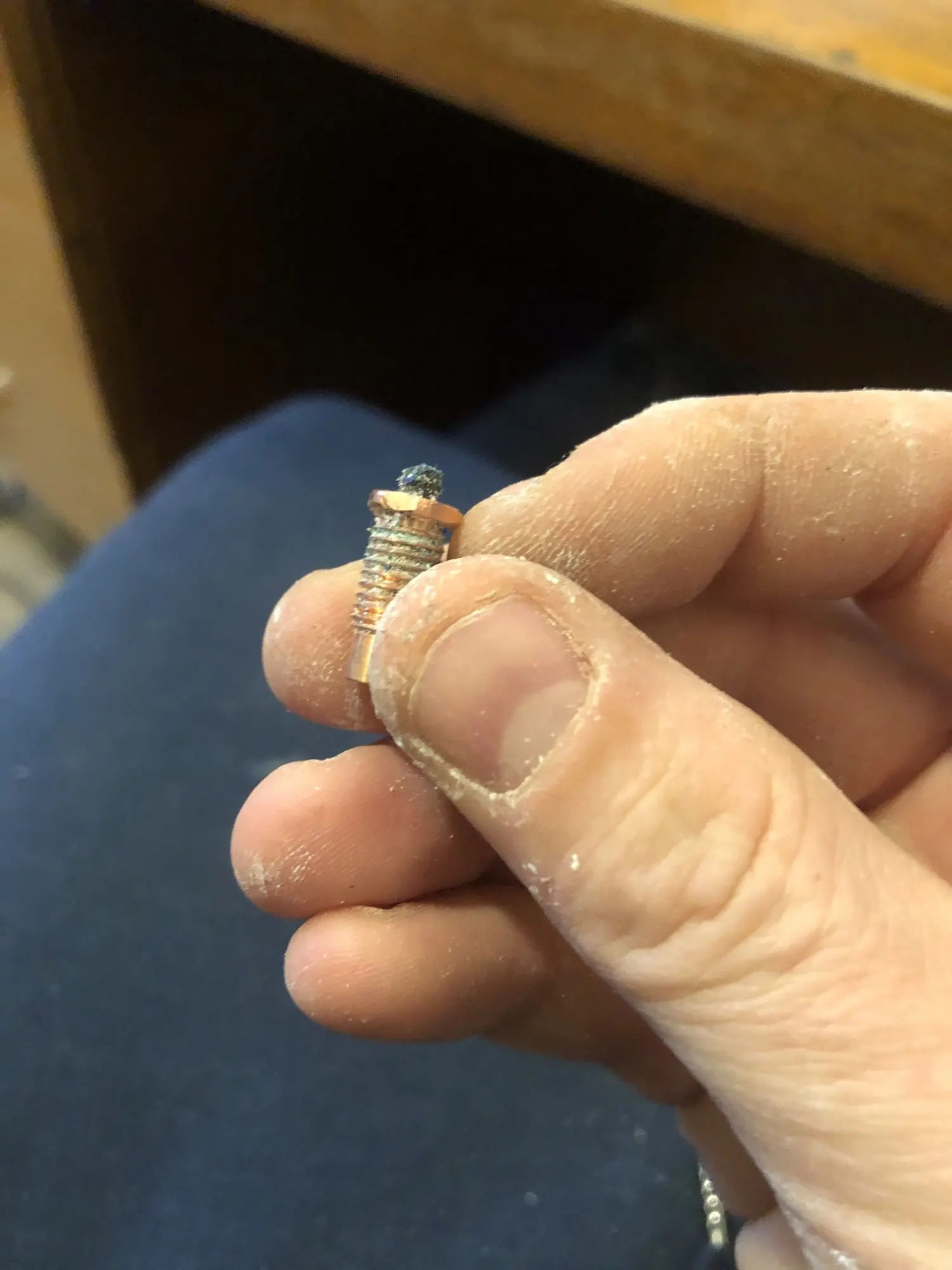 As copper will oxidize in the air to produce black spots