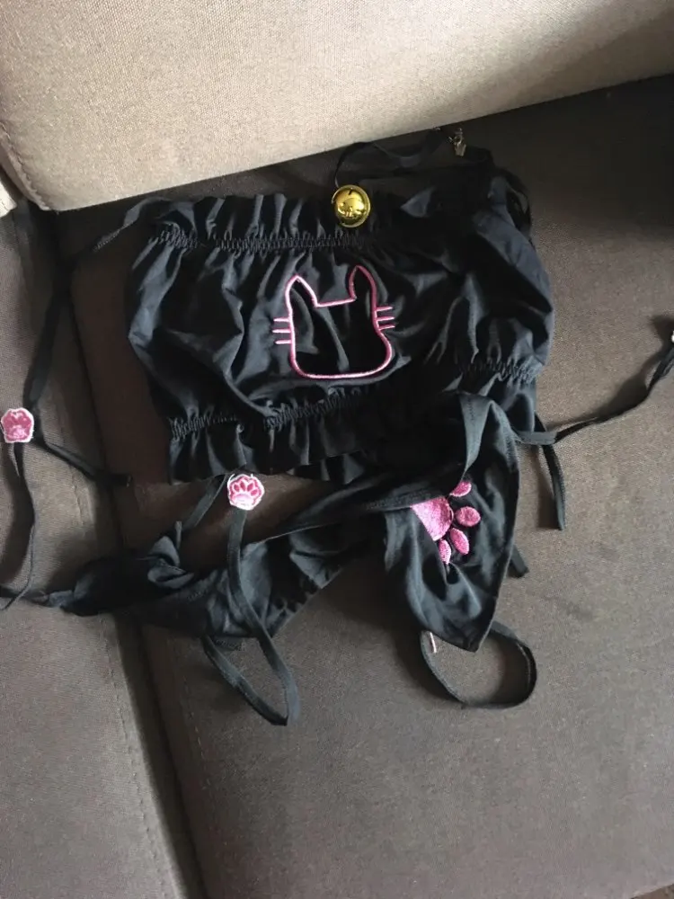 Mignon Lolita Sexy chat percé Kawaii femmes sous-vêtements bref ensemble belle bande dessinée soutien-gorge Sexy Lingerie cloche tour de cou Cosplay pour fille