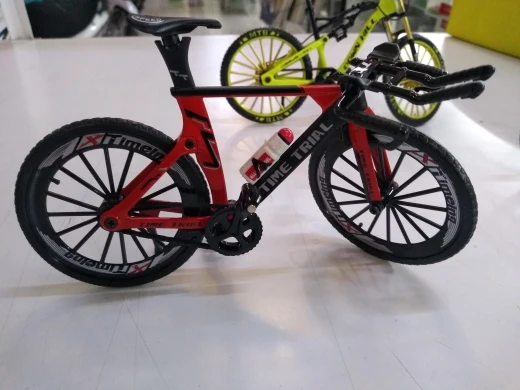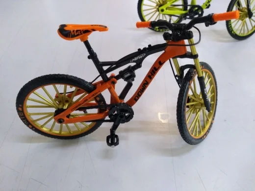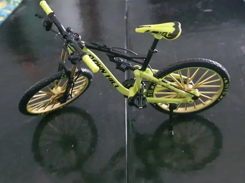 Réception rapide Article identique à la description ;Les roues tournent et sont même entrainées par la chaine . En fait , toutes les pièces en mouvement sur un vrai vélo , fonctionnent sur ce vélo miniature sauf les poignées de frein qui elles, ne sont pas montées sur un axe et la fourche avant qui ne contient pas de ressort .En revanche ,l'amortisseur arrière lui , fonctionne . C'est le 3ième vélo que j'achète .