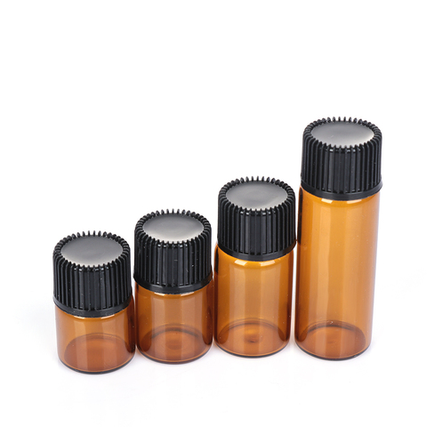 Mini bouteille d'huile essentielle en verre, conteneur de cosmétiques 1/2/3/5ml, rechargeable, Portable, avec bouchon marron, avec Orifice, 10 pièces