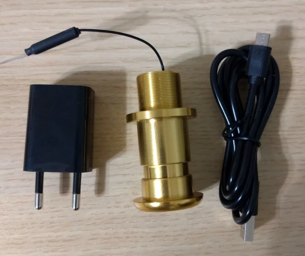 Je ne suis pas ravi de cet achat. Le diamètre est de 2.6 cm et la longueur de 6.5 cm, il faut compter 1,5 cm de plus en longueur, ce qui fait 8 cm de long. Il vous faudra une alimentation 220V à proximité, et que votre box ne soit pas à plus de 4 mètres si vous avez un mur entre les deux. Pour moi, impossible de faire un trou aussi gros, je n'ai pas de prise et je ne vois pas un truc dépasser de 4 cm de ma porte. Complètement inadapté pour un porte.