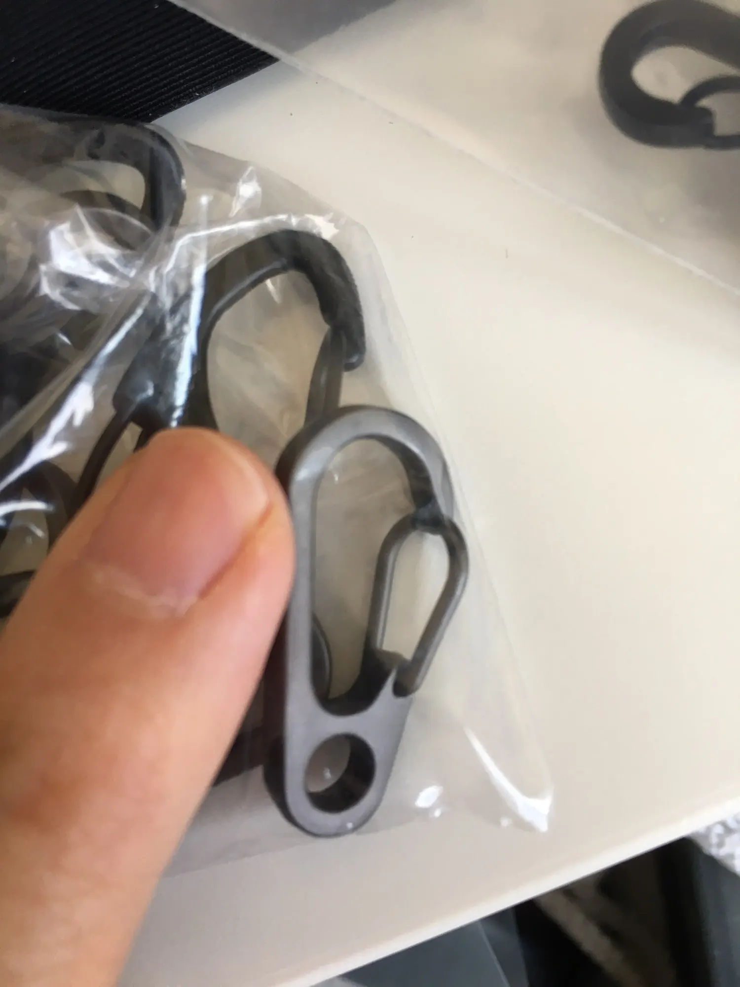 Plus petit que ce que je pensais, mais ça ce n'est pas grave en soit. La fermeture des mousqueton n'est pas aussi bien fini que sur les photos, c'est plus dérangeant car j'ai bien peur que cela ne joue sur la solidité de l'ensemble. Dommage.