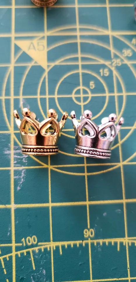 Mini couronne 3D plaqué argent, 10 pièces, pendentifs en alliage pour colliers, boucles d'oreilles bijoux à bricoler soi-même fabrication artisanale 13x11mm A158