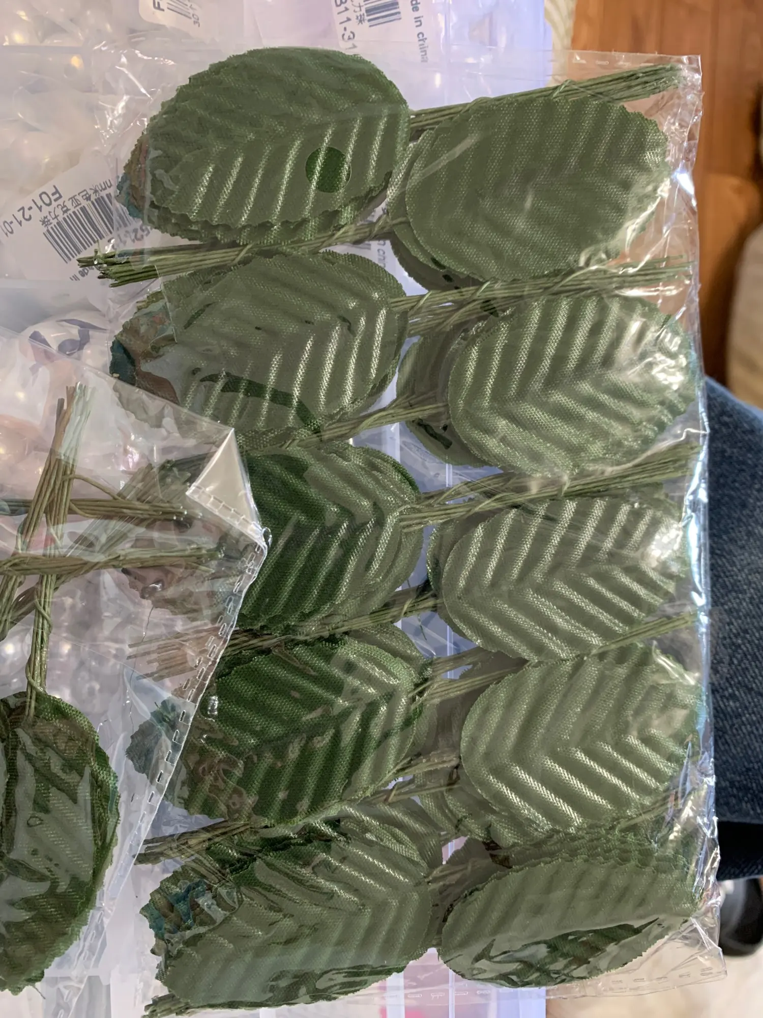 Artificial coloured silk leaves with iron wire