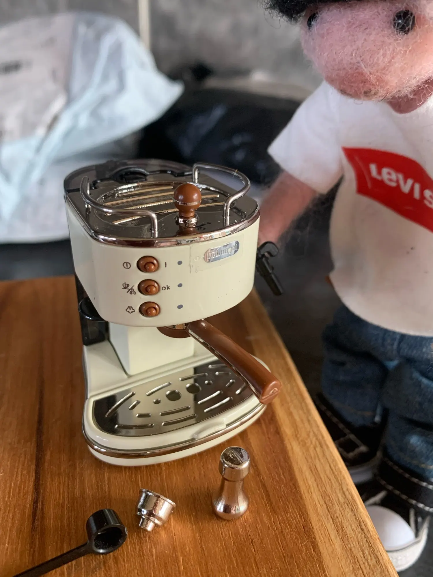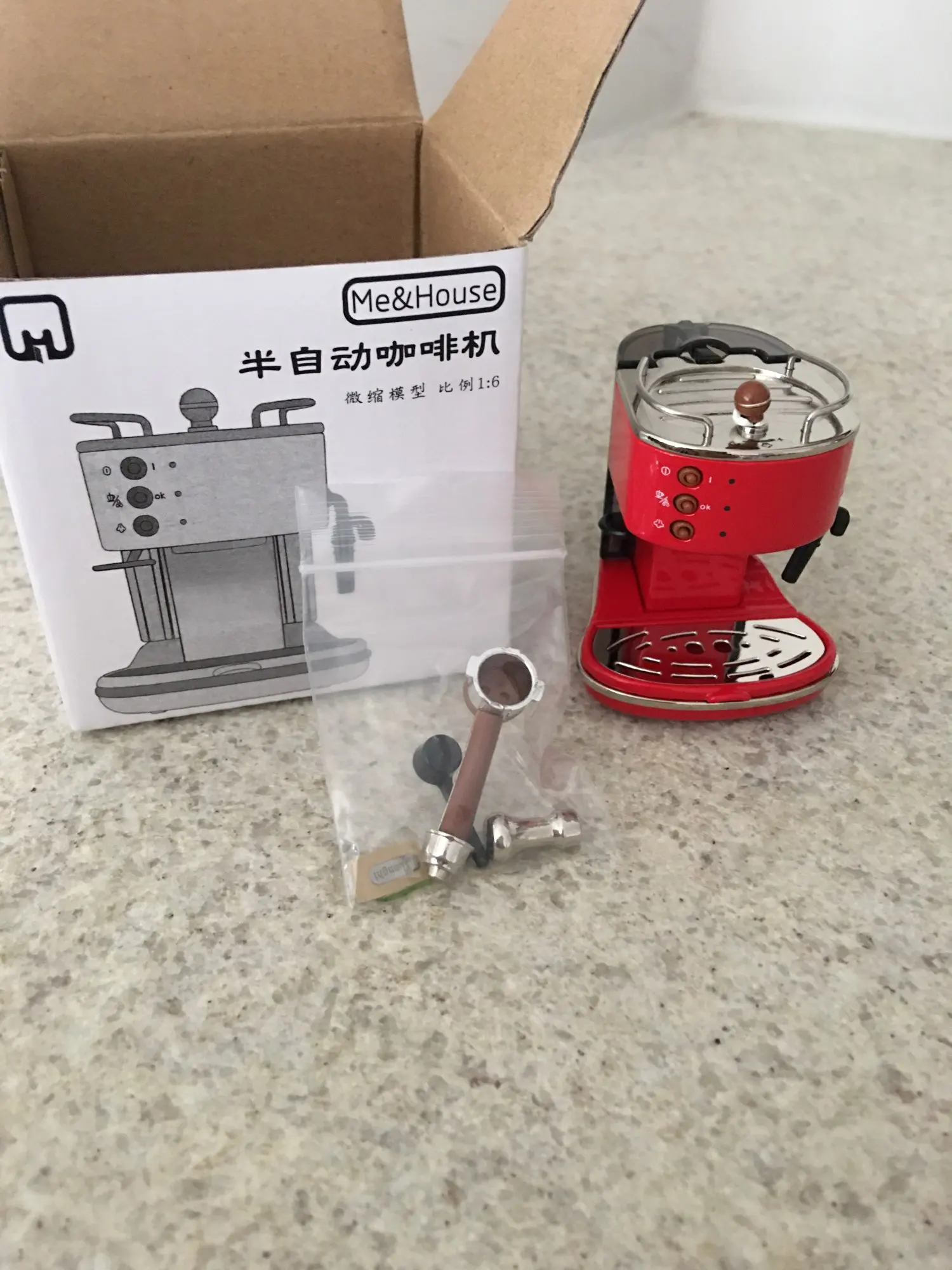 Mini machine à café rétro brillante, modèle de maison de poupée, accessoires de meubles, 1/6