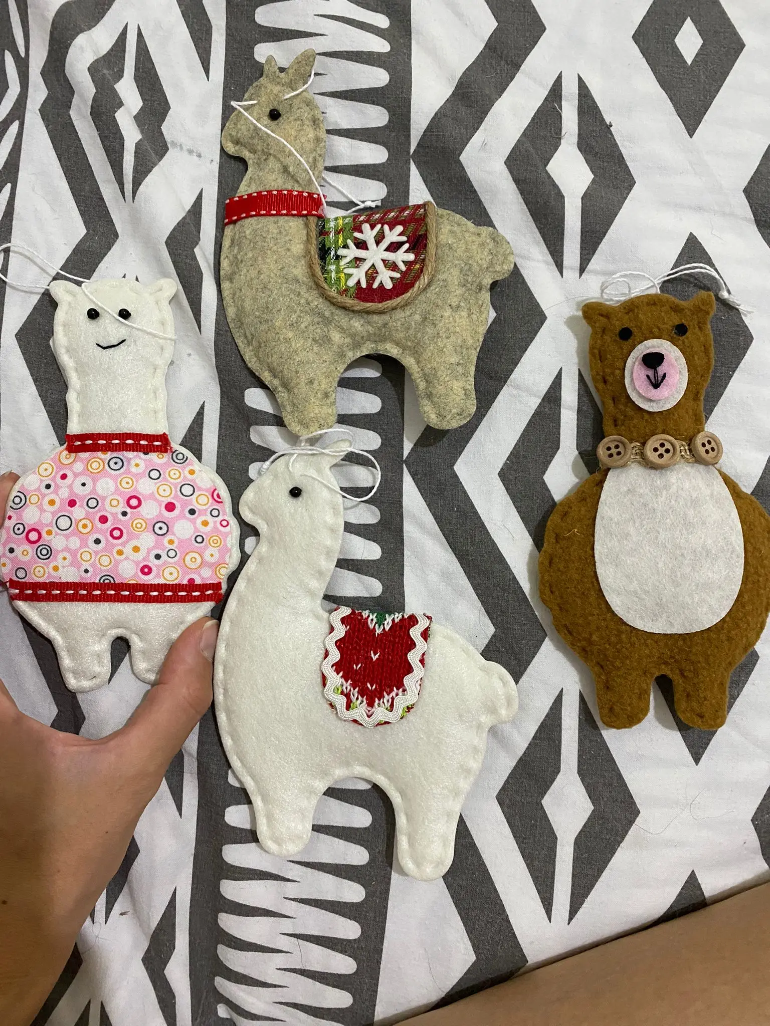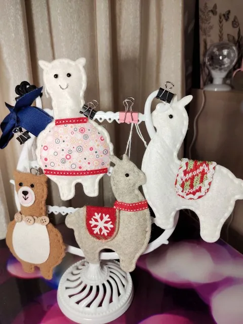 Mini pendentifs en feutre pour sapin de noël, 4 pièces, ensemble d'alpaga en peluche, décorations de joyeux noël pour la maison, décoration suspendue