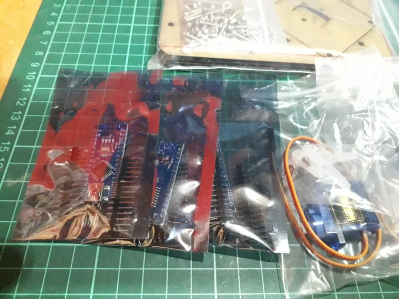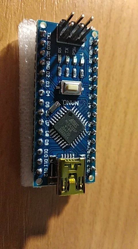 Report de branchements très pratique pour tester un Arduino Nano, d'autant que chaque I/O dispose d'un connecteur à 3 broches avec +5v et GND. Autre avantage: le circuit imprimé dispose à sa périphérie de perçages avec la disposition exacte des broches d'un Arduino Uno, ce qui permet d'utiliser un Nano avec les shields prévus pour un Uno (connecteurs non fournis).