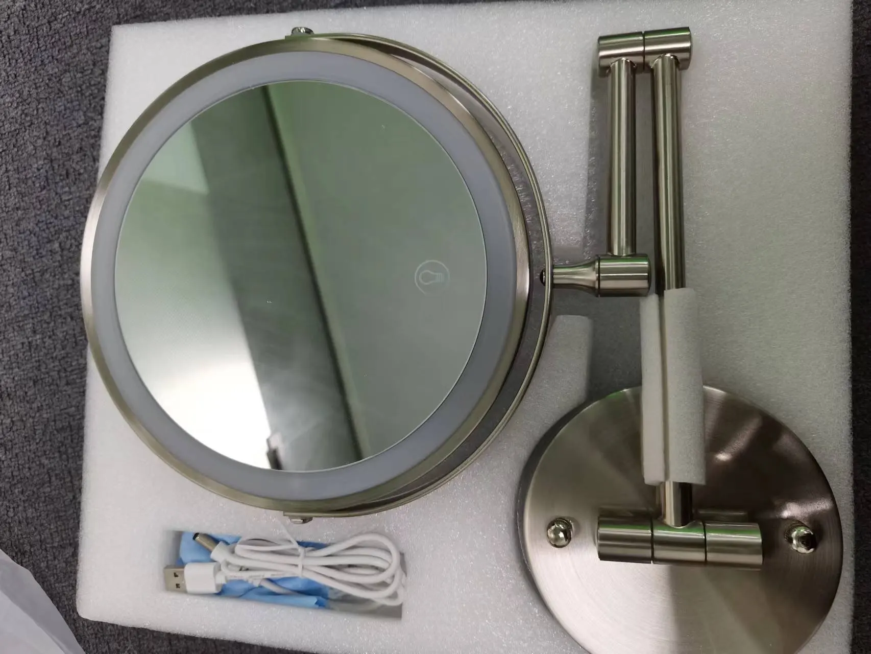 Miroir mural pliant avec lumière, miroir de salle de bains ajustable lumineux, miroir de maquillage à Led, grossissant 1x 10x, tactile Double face