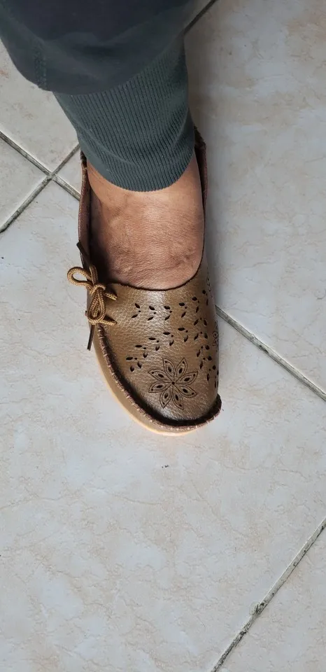Mocassins à enfiler en cuir véritable pour femmes, chaussures de ballerines souples Oxford décontractées, grande taille 44