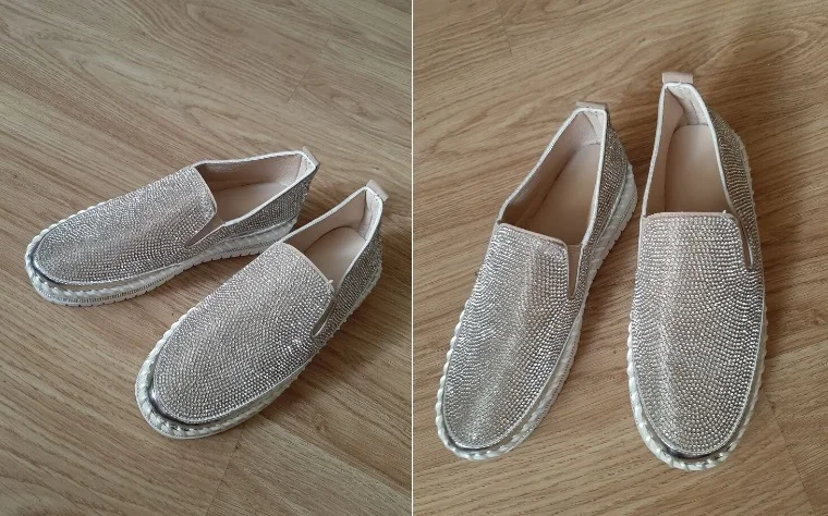 Mocassins à plate-forme plate en cristal pour femmes, à paillettes, à la mode, chaussures de printemps, 2022