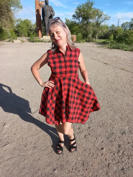 Mode printemps été dame Plaid impression bouton bas mince sans manches irrégulière robe Midi vêtements pour femmes