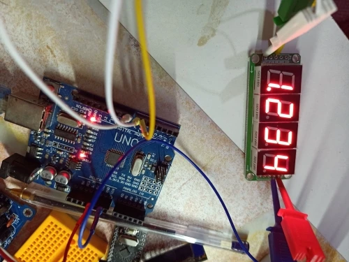Всё работает. Очень ярко. //карта сегментов byte numberSegments[] = { 0b00000011,//0 0b10011111,//1 0b00100101,//2 0b00001101,//3 0b10011001,//4 0b01001001,//5 0b01000001,//6 0b00011111,//7 0b00000001,//8 0b00001001,//9 0b11111111,//dp 0b11111111,//Off }; /* 0bABCDEFGDp